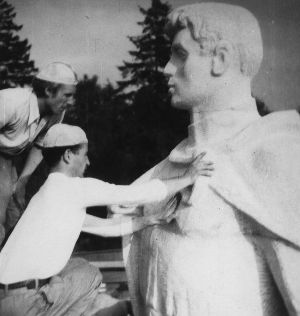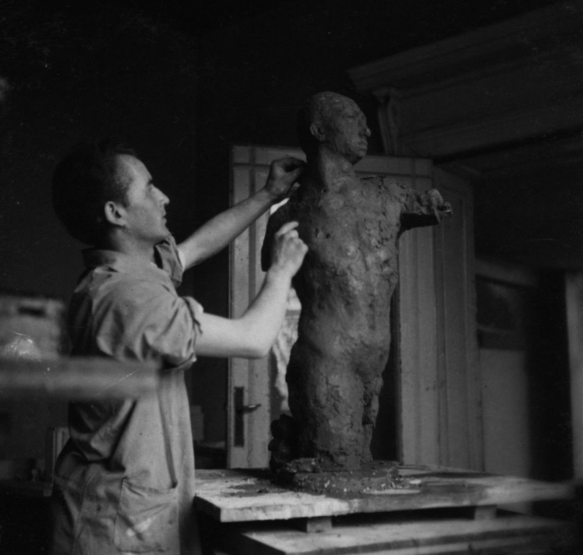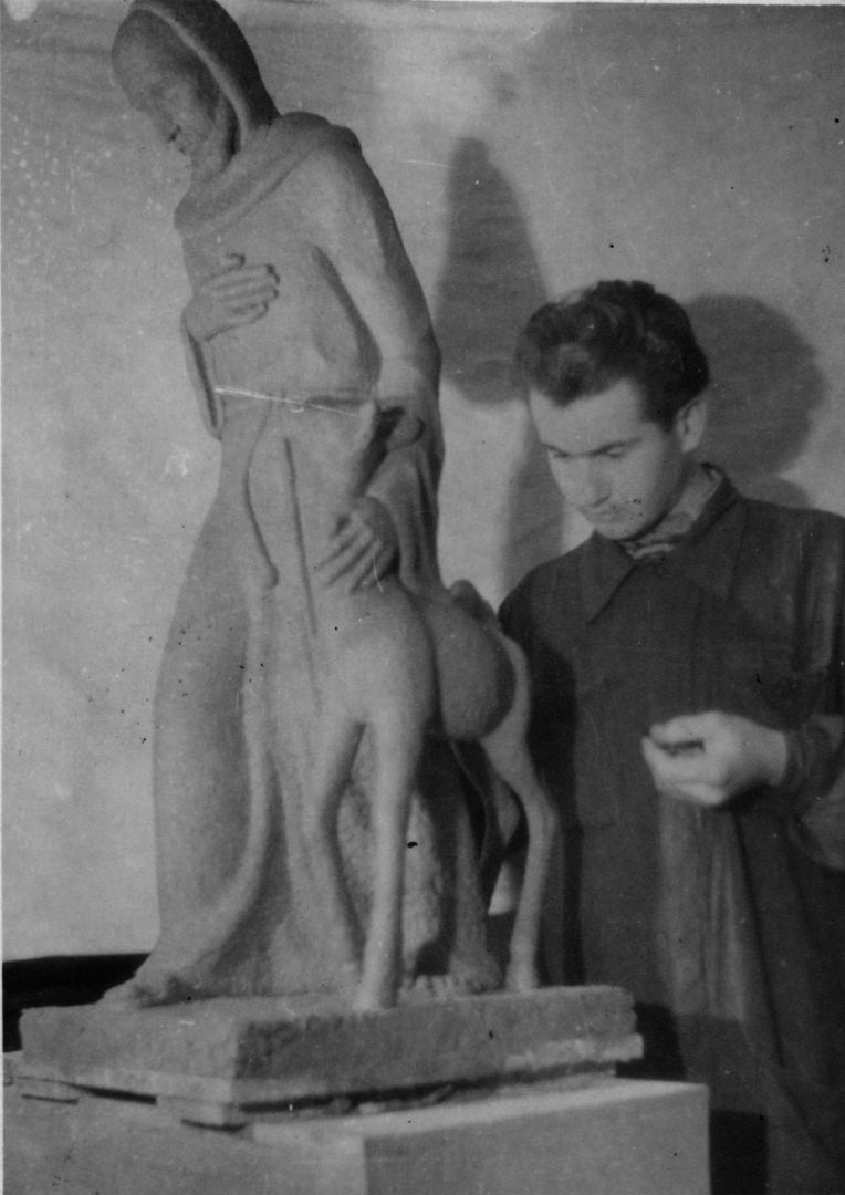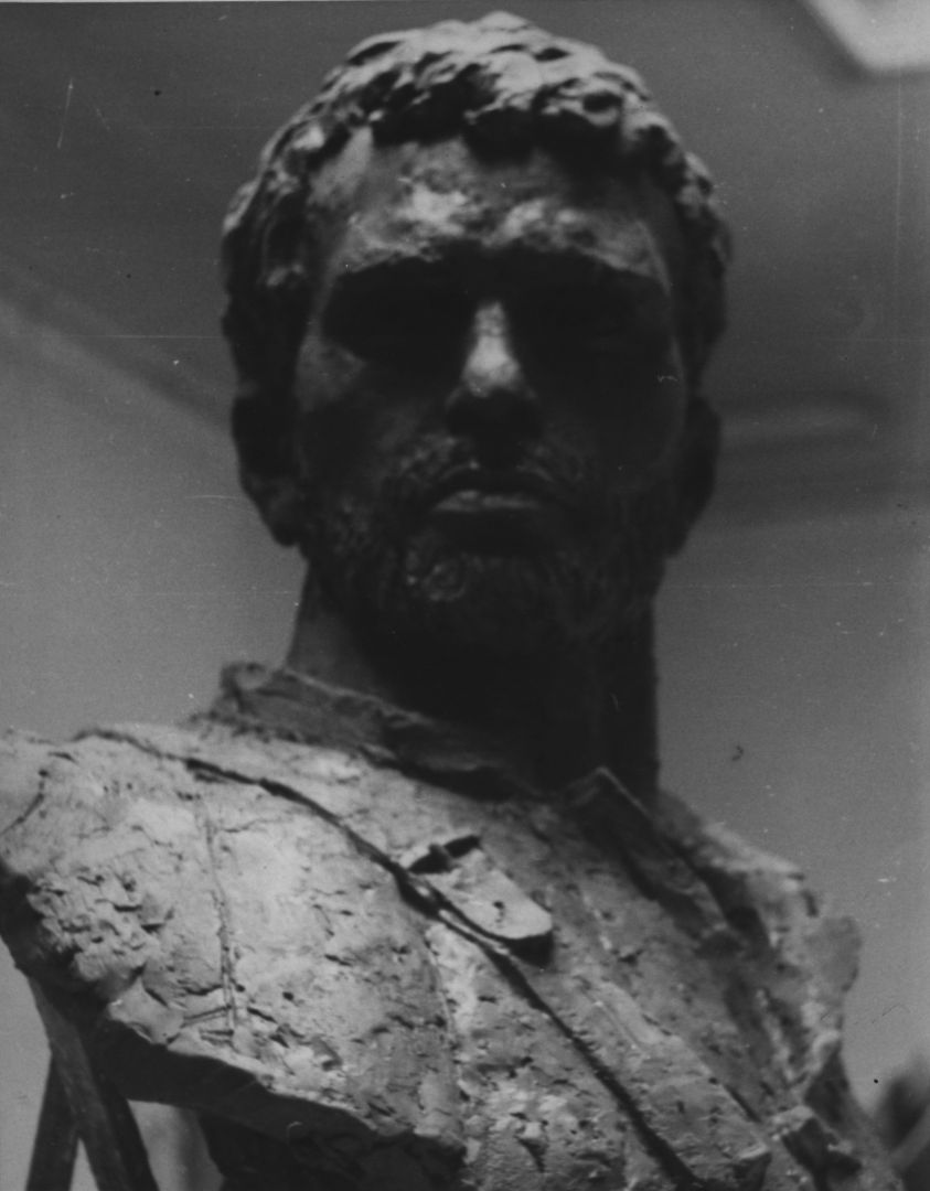 Franciszek Duszeńko w pracowni – praca studencka, rzeźba tors; Sopot; 1946-1952; I/A/1/10; fot. N.N.