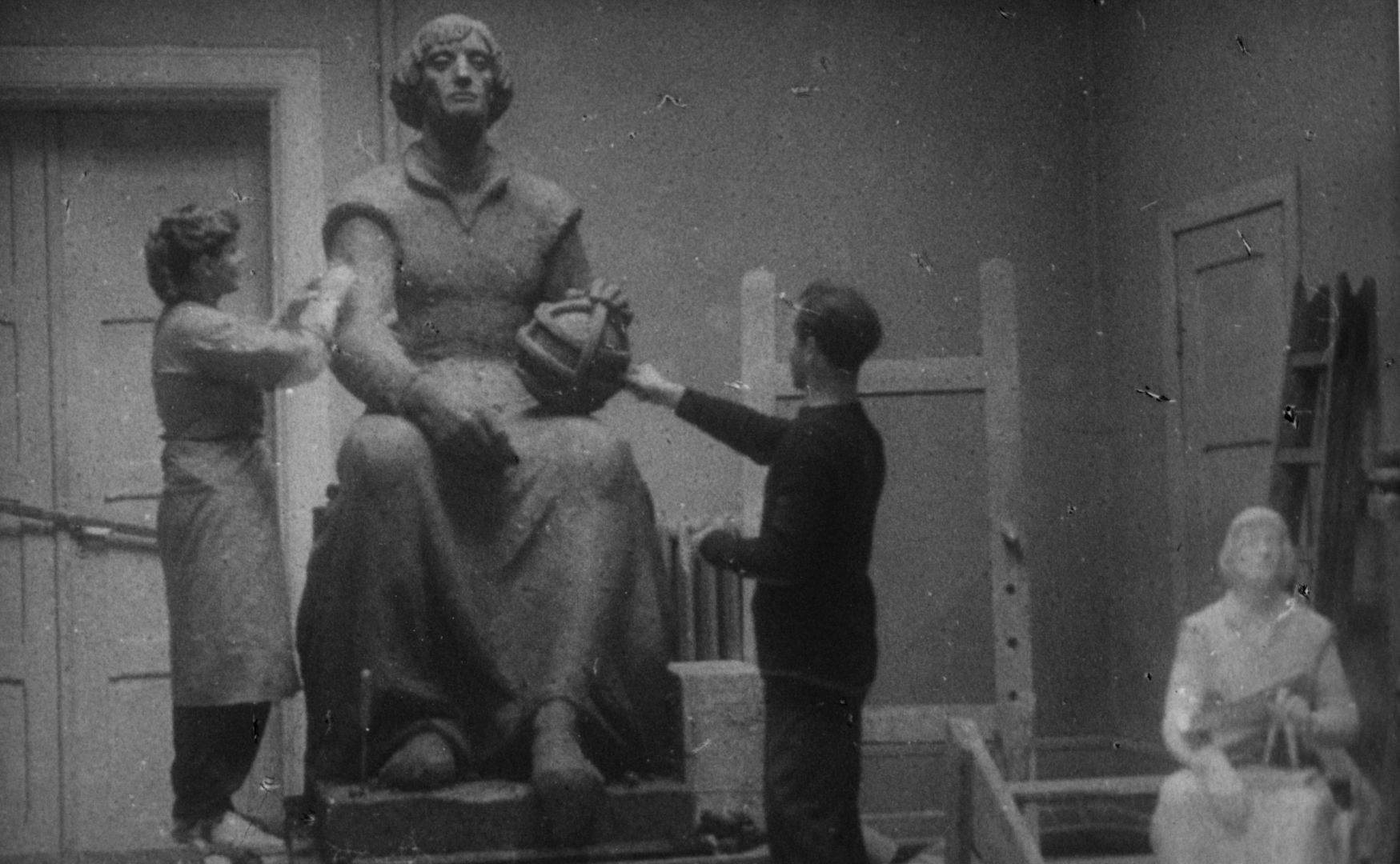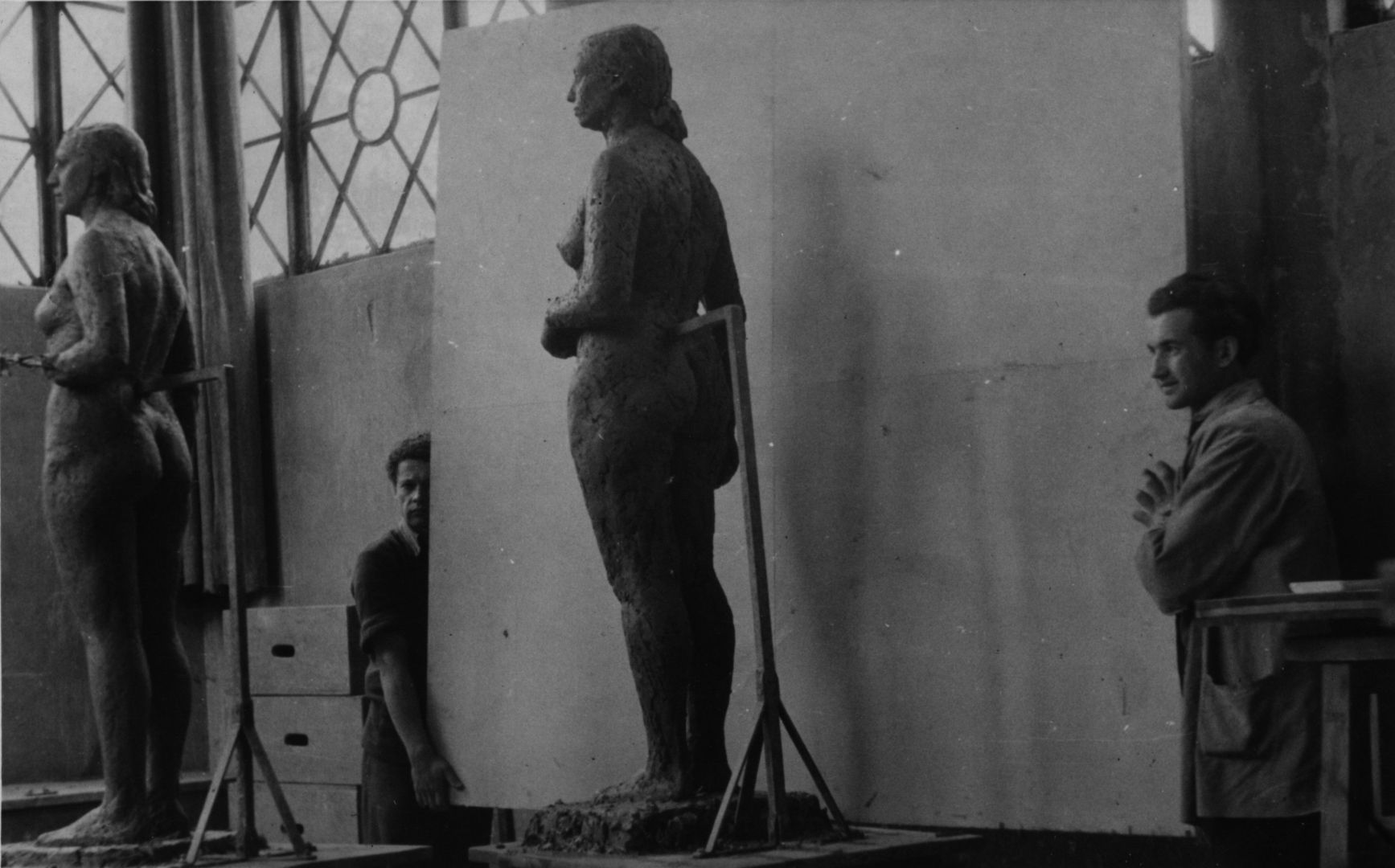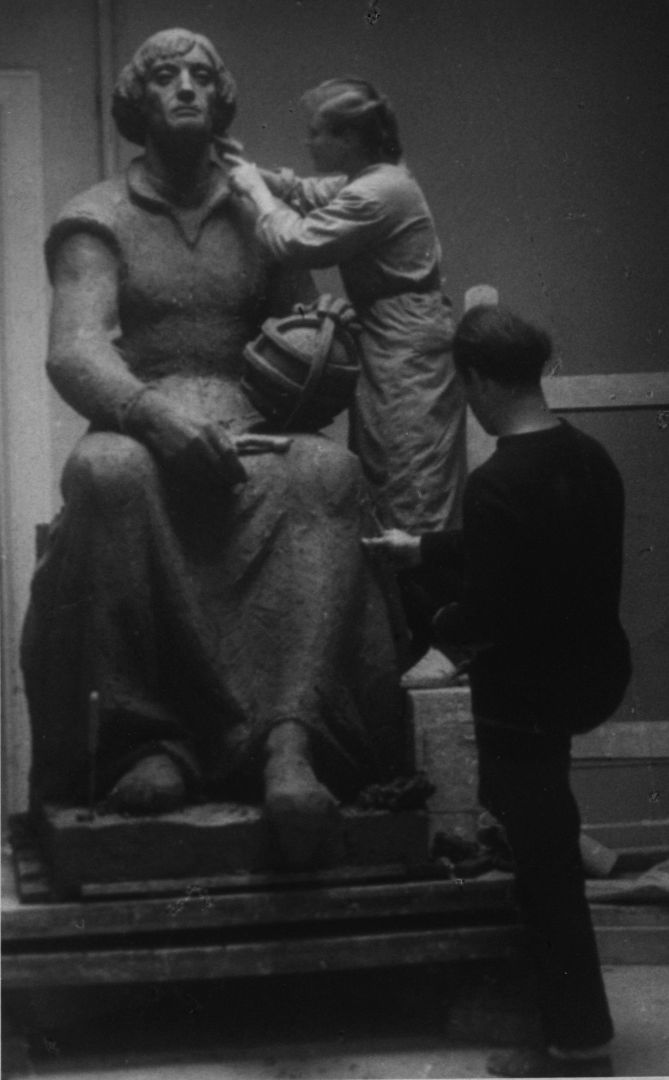 Franciszek Duszeńko w pracowni – praca studencka, rzeźba tors; Sopot; 1946-1952; I/A/1/10; fot. N.N.