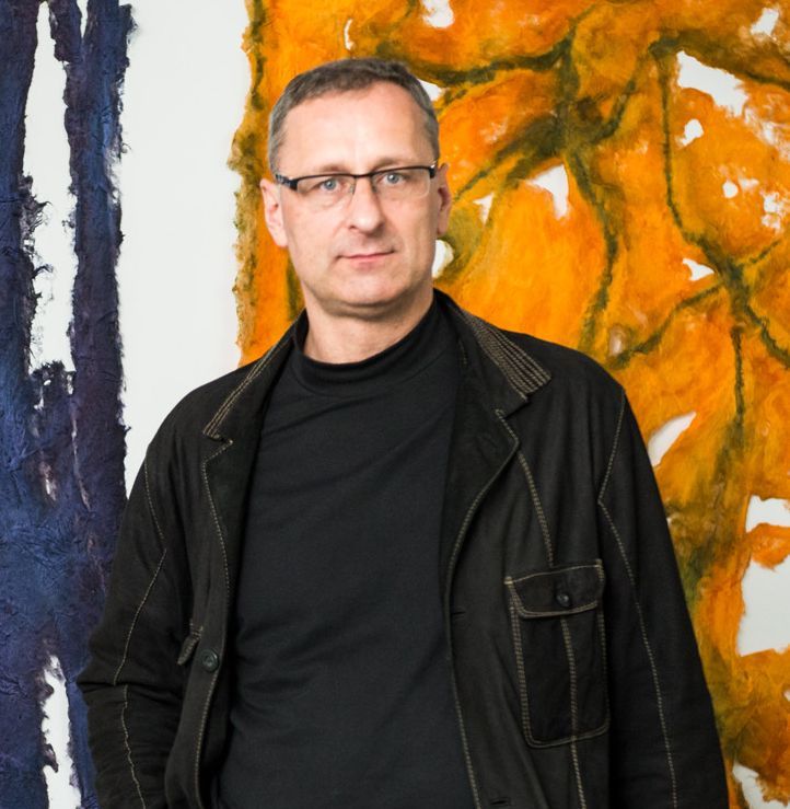 He was born in 1961 in Poniatowa. A graduate of the Faculty of Painting and Graphic Arts PWSSP (now ASP) in Gdańsk, diploma in 1986. Since 1989, he has been working at the Academy, currently, as an associate professor, he runs the Fiber Art Studio at the Faculty of Painting and manages the Department of Artistic Specializations. He obtained the title of professor of fine arts in 2013. He is involved in painting, graphics, printed fabric and exhibition. Author of 30 individual exhibitions, participant of 100 group exhibitions in the country and abroad.
