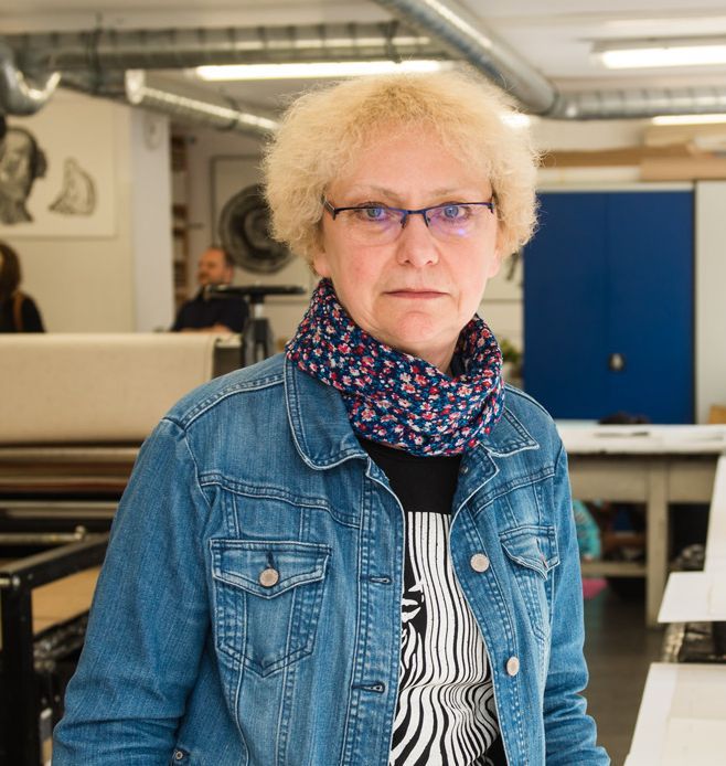 She was born in 1953 in Lublin. She studied at the PWSSP (now ASP) in Gdańsk, at the Faculty of Painting, Graphic Arts and Sculpture in Professor Władysław Jackiewicz's studio, the field of painting, diploma in 1979. Titular Professor. At the Academy of Fine Arts in Gdańsk, she runs the Intaglio printing studio. She practices artistic graphics, drawing, painting and Photography of nature. Author of 34 individual exhibitions participated in over 140 group exhibitions in Poland, Germany, Denmark, Norway, Sweden, France, Spain, Portugal, Monaco, the Netherlands, Japan, Korea, Canada and the United States. Winner of 33 awards and distinctions at regional, national and international exhibitions and competitions. Four-time scholarship holder of the Ministry of Culture and Arts. Juror of many graphic competitions. Graphic works are in museums and collections in Poland, Denmark, Finland, Norway, Germany, the Vatican, Italy, Japan, the United States and Canada.