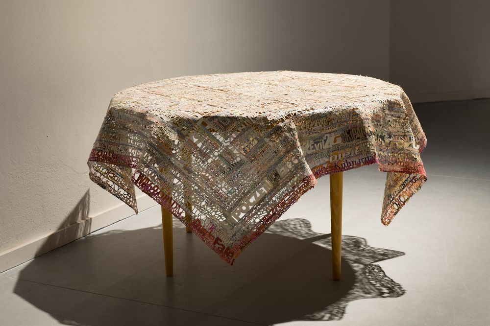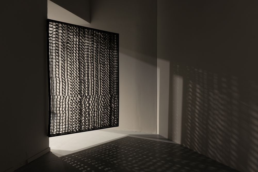"In my realizations, I often depart from a distinct form by building a vibrating and elaborate structure that comes into noticeable interaction with space. It penetrates with it and co-constructs the works being constructed. The meeting with space sets the framework for created implementations and outlines the areas in which it builds their constituent elements. By developing the existing space, I create places – fragments of space subordinated to it. I often meet in it places that were previously brought to life by its previous users, areas of character and mood determined by the way they are used, and the functions and roles they fulfilled or still fulfil. I experienced these meetings with space and place by installing the following works. I applied already existing elements of my works to areas, parasitizing some of their original functions. The history of the area and its purpose were complemented by reading the newly appointed places."