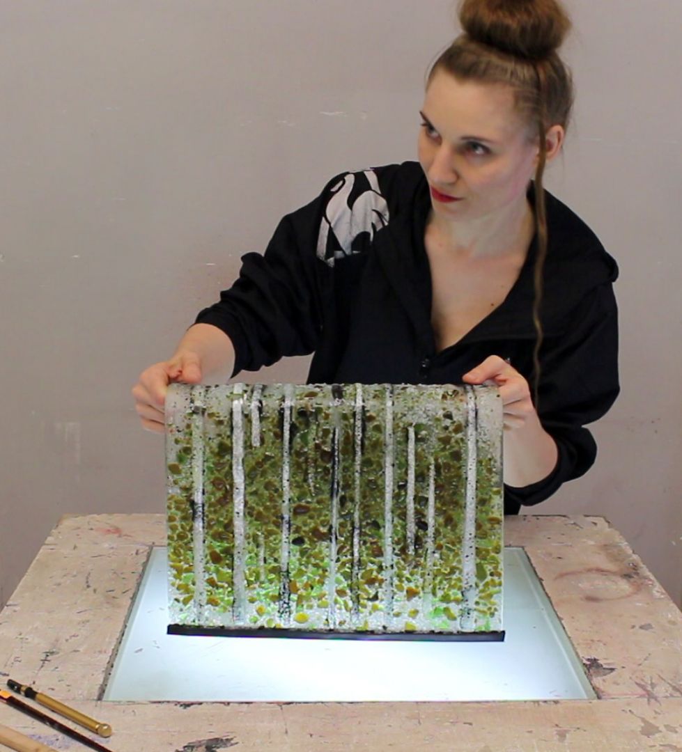 In her work, Zdzichowska combines traditional painting techniques with non-traditional reprinting methods and experiments with glass. As part of her doctoral research, she invented a method of applying stained glass paint to glass (2021) and obtained an invention patent (2023). The new technique of applying paint allowed her to blur the boundaries between painting, graphics and stained glass.
