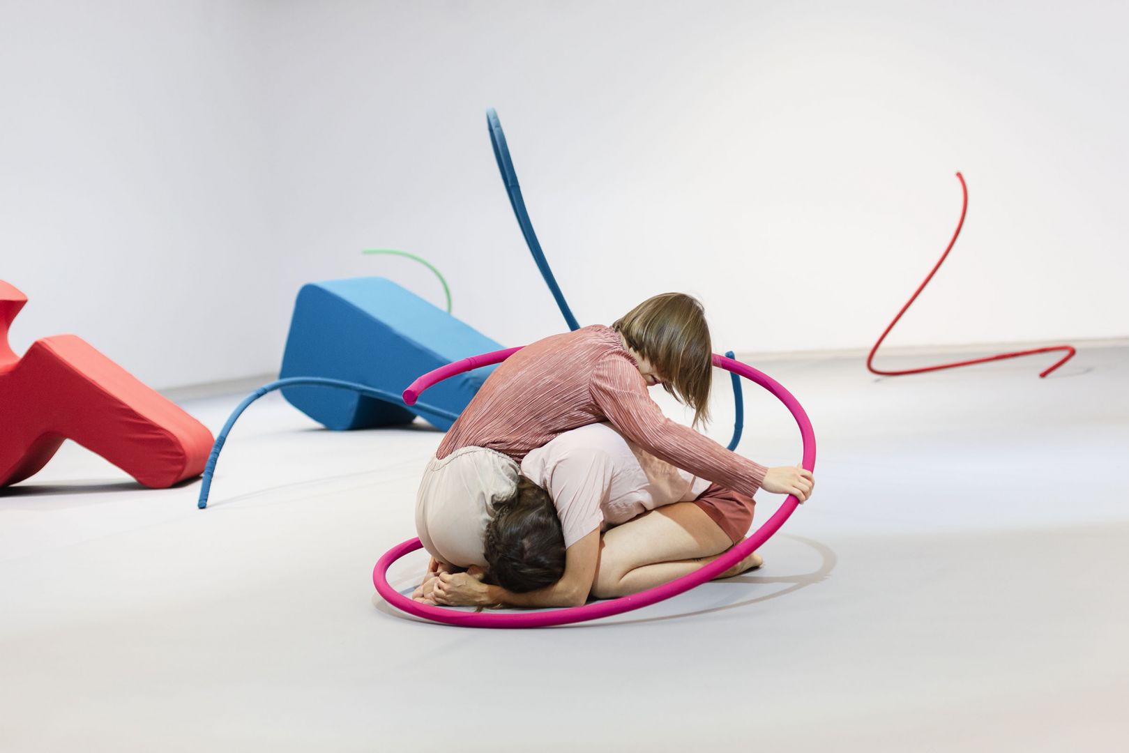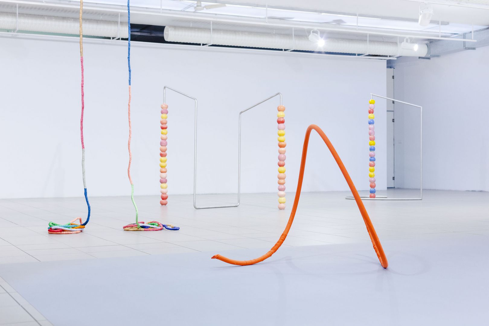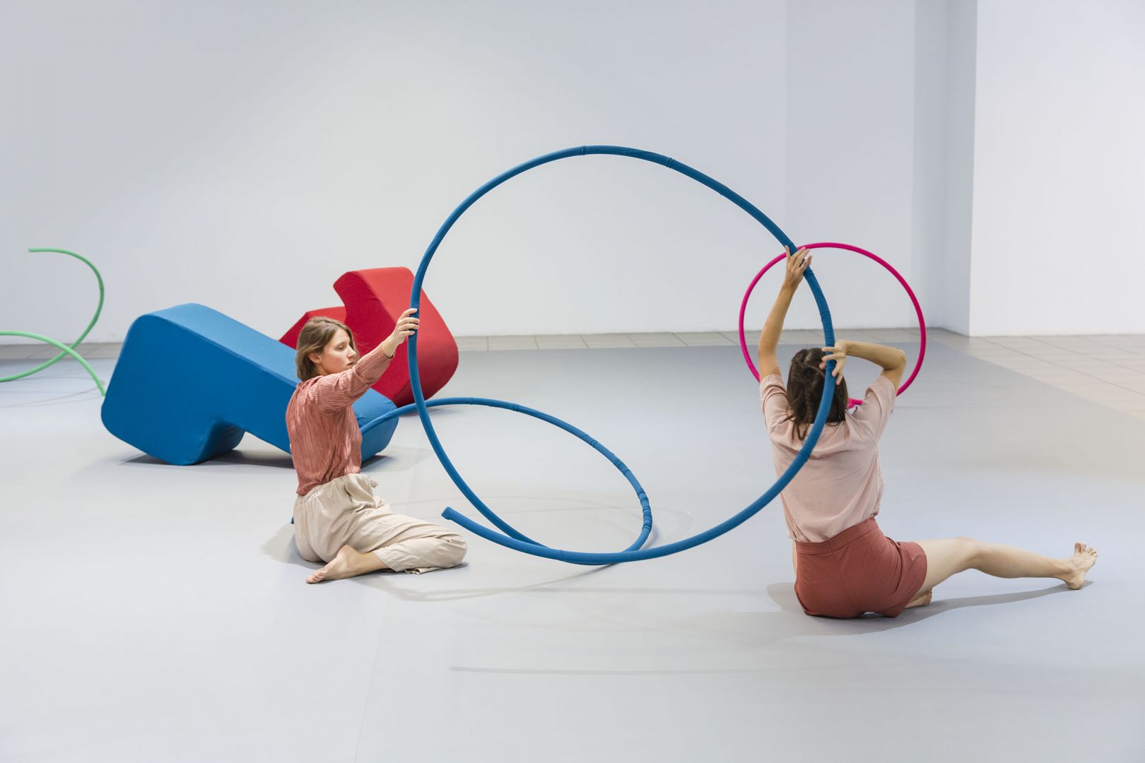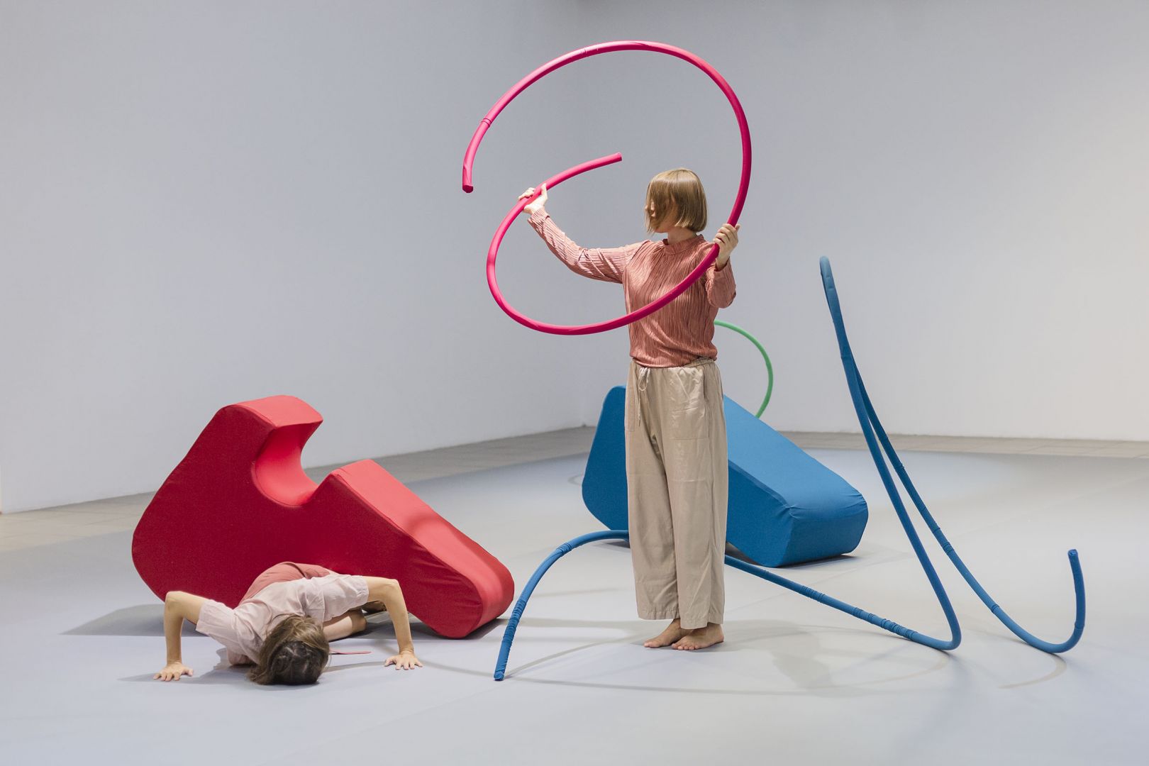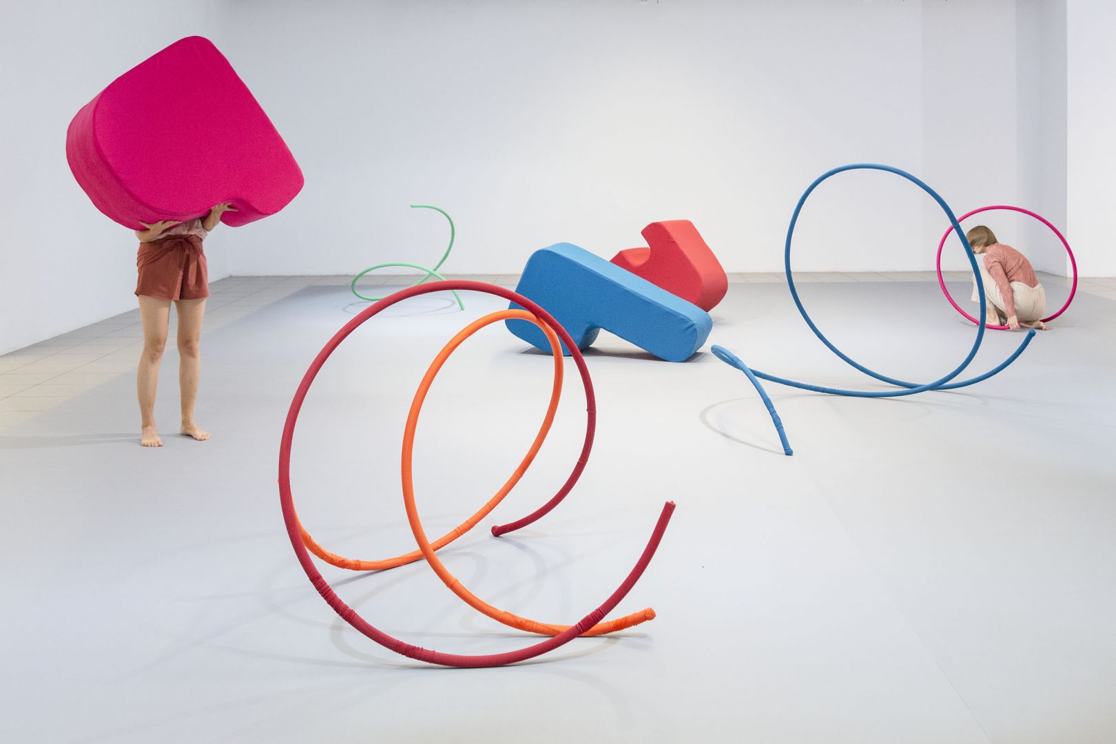 Artystka myśli o nich jak o zbiorze, składającym się na rodzaj alfabetu, w ramach którego poprzez prywatne choreografie, można dowolnie łączyć poszczególne formy i tworzyć tym samym nowe znaczenia. Przestrzeń jest w tym kontekście archiwum linii wyznaczonych przez ruchy odbiorów. Kalkulujące, racjonalne, zdystansowane oko, ćwiczone przez naukę, jako narzędzie obiektywnego poznania, wraca do ciała, by razem z rzeźbami tworzyć chwilowe, pełne afektów, połączenia.