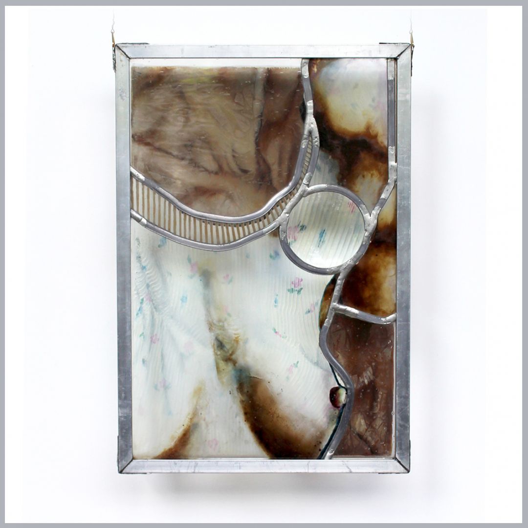 Projekt Zakryte-Odkrytym składa się z dwóch realizacji o zbliżonych wymiarach, wykonanych w odmiennych technikach. Ustawiony z przodu witraż przesłania obraz olejny, jednocześnie prezentuje wizerunek ciała nagiego, które okrywa ciało ubrane. Tytuł Zakryte Odkrytym podkreśla antynomiczną relację między nimi oraz znamienny dla mnie, warstwowy sposób komponowania prac.