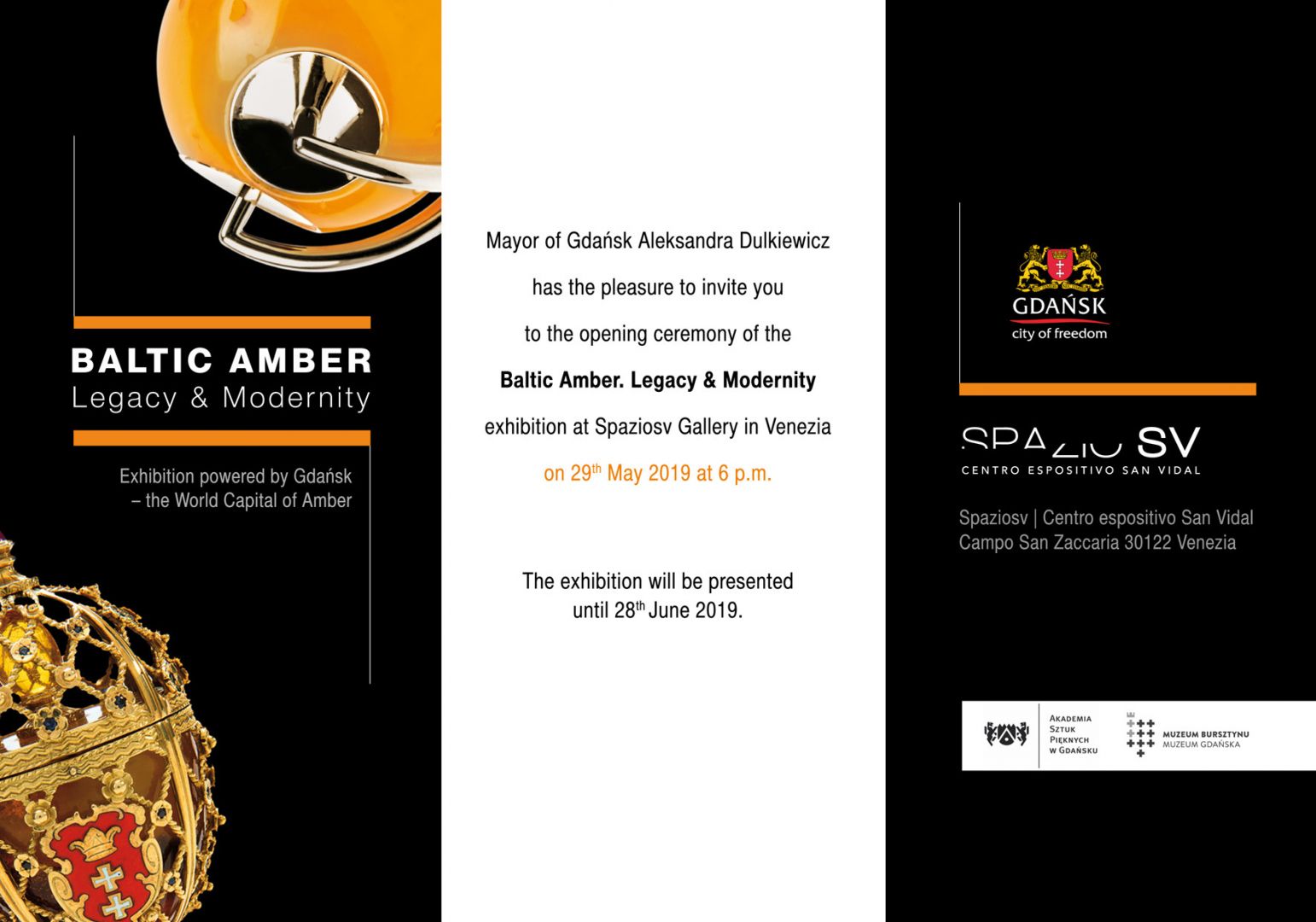 Wystawa BALTIC AMBER – Legacy & Modernity będzie miała swoją inaugurację w galerii Spazio SV w samym centrum Wenecji, niedaleko San Marco już 29. maja 2019 r. Kontynuując sukces wystawy BALTIC AMBER – Tradition & Innovation, prezentowanej w latach 2015-2018, kolejno: podczas Wystawy Światowej EXPO w Mediolanie, w Europejskim Centrum Solidarności w Gdańsku, na targach Inhorgenta w Monachium, dwukrotnie w Brukseli – w centrum wystawienniczym Tour & Taxis oraz w Parlamencie Europejskim oraz ponownie w Gdańsku – w Galerii Palowej, tym razem organizatorzy zaproponowali nową edycję.