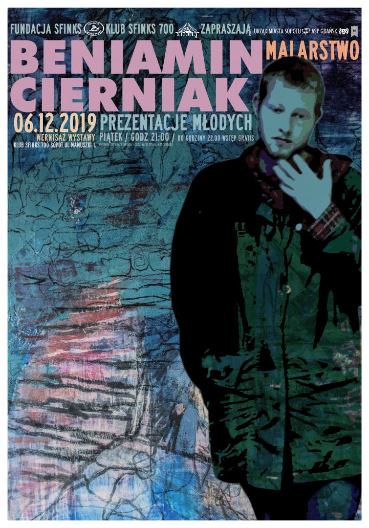 Zapraszam na kolejną wystawę z cyklu Prezentacje Młodych. Bohaterem tej edycji jest student piątego roku Wydziału Malarstwa Beniamin Cierniak. Ma w swoim dorobku pokaźną liczbę prac malarskich, grafik, instalacji przestrzennych i wizualizacji; gra na waltorni, co czasem wykorzystuje w swoich performensach. Serdecznie zapraszam na rytualne artystyczno-klubowe spotkanie sfinksowej rodziny i wszystkich miłośników malarstwa w piątek o godz. 21.00 do Klubu Sfinks700.