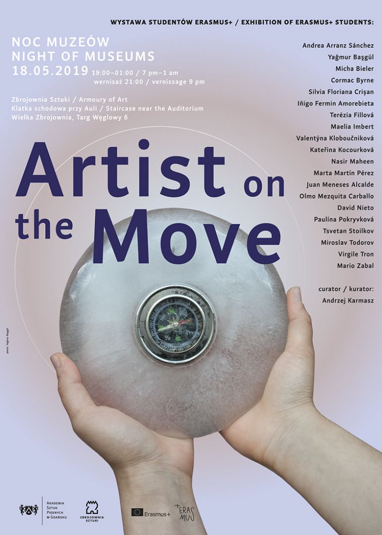 Wystawa studentów przebywających na ASP w Gdańsku w ramach programu ERASMUS + powstała w ramach zajęć 'Artis on the move'. Był to cykl wykładów i warsztatów dotyczących kwestii mobilności w sztuce współczesnej. Badano, w jaki sposób nowo poznawana przestrzeń społeczno-kulturowa wpływa na artystów i w jaki sposób wykorzystują oni swoją mobilność poza granicami własnego kraju. Studenci szukali odpowiedzi na pytanie, w jaki sposób mobilność wpływa na sztukę, jak odległość zwiększa wrażliwość i poszerza granice percepcji?
