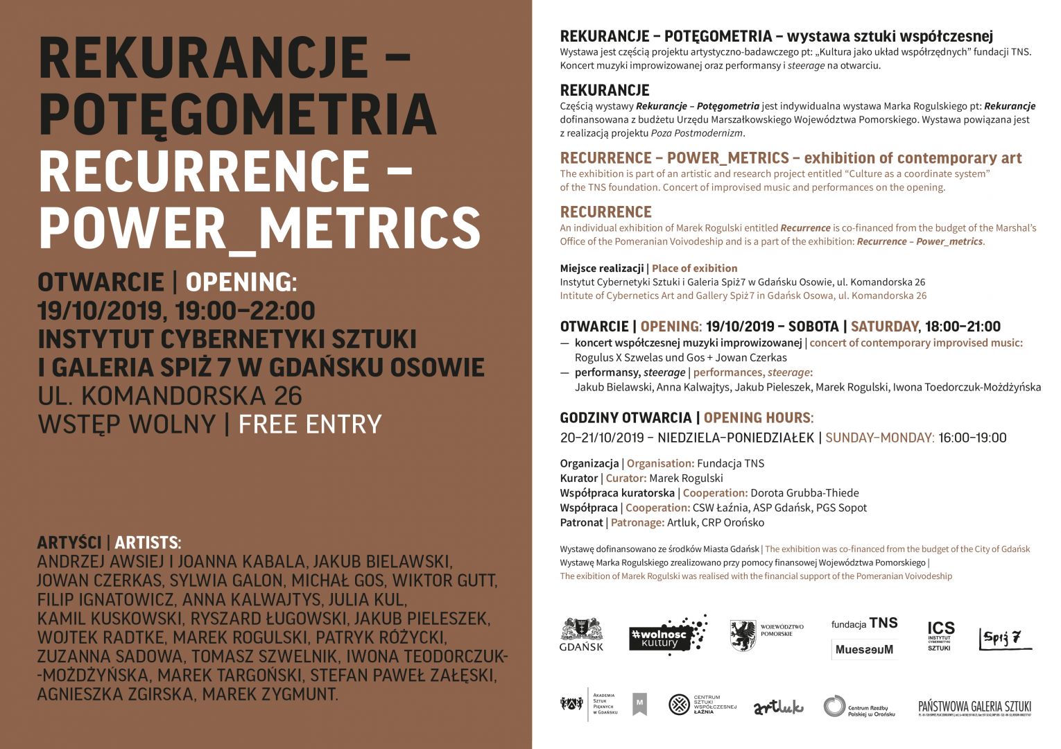 Częścią wystawy Rekurancje – Potęgometria jest indywidualna wystawa Marka Rogulskiego, pt: Rekurancje dofinansowana z budżetu Urzędu Marszałkowskiego Województwa Pomorskiego. Wystawa powiązana jest z realizacją projektu Poza Postmodernizm.
