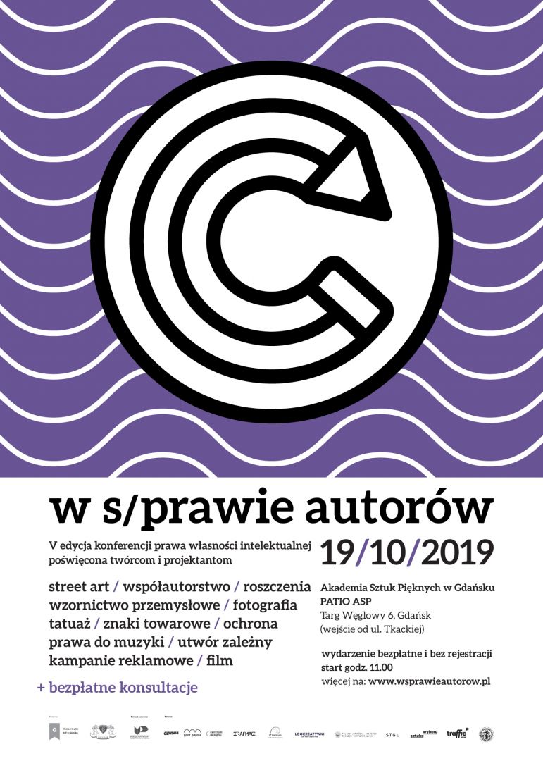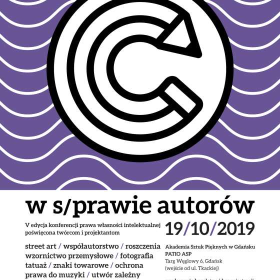 Piąta edycja "w sprawie autorów", konferencji poświęconej prawom twórców i projektantów, już 19 października 2019 r. na PATIO ASP, na Akademii Sztuk Pięknych w Gdańsku.