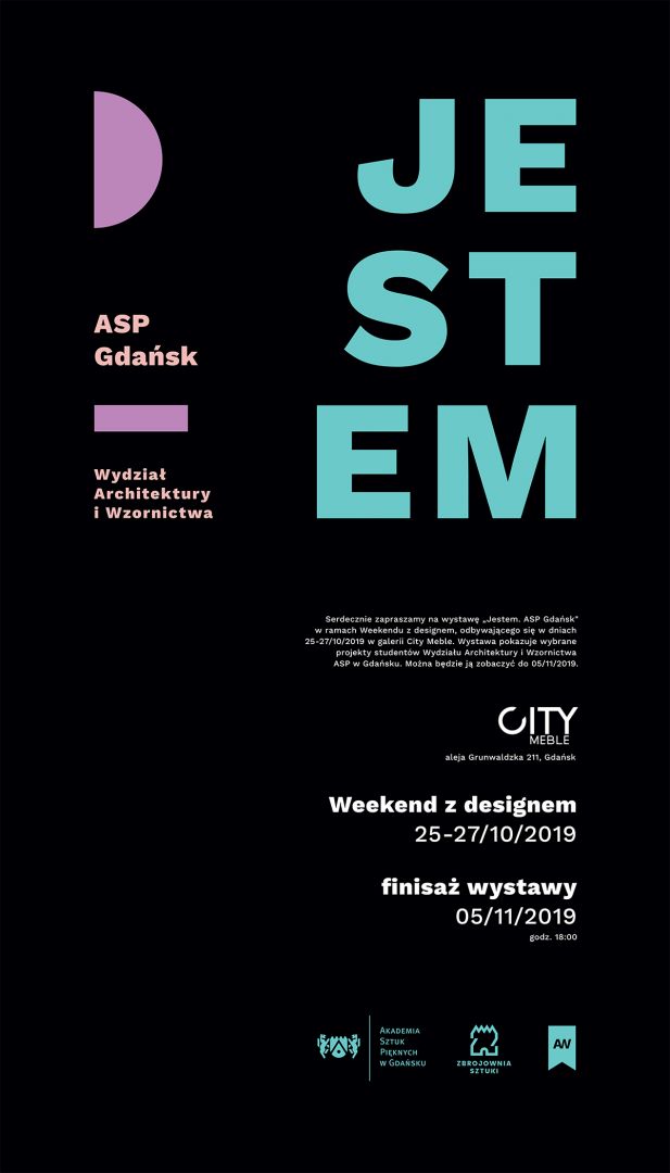 Serdecznie zapraszamy na wystawę "Jestem. ASP Gdańsk" w ramach Weekendu z designem, odbywającego się w dniach 25-27/10/2019 w galerii City Meble. Wystawa pokazuje wybrane projekty studentów Wydziału Architektury i Wzornictwa ASP w Gdańsku. Można będzie ją zobaczyć do 5/11/2019.