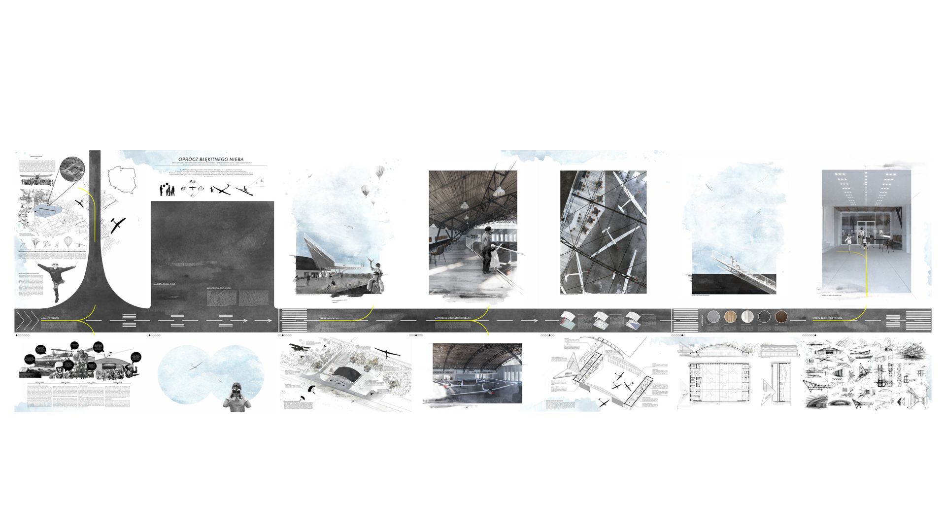 Projekt jest pracą magisterską, która powstała pod kierunkiem prof. Beaty Szymańskiej w Pracowni Projektowania Architektury Wnętrz. Za swoją pracę „Oprócz błękitnego nieba. Przekształcenie infrastruktury Aeroklubu Gdańskiego z wprowadzeniem funkcji ogólnodostępnych” nasza absolwentka została też wyróżniona w konkursie Najlepsze Dyplomy Wydziału Architektury i Wzornictwa ASP Gdańsk podczas Gdynia Design Days. O dyplomie pisze również magazyn „Architektura i Biznes”.