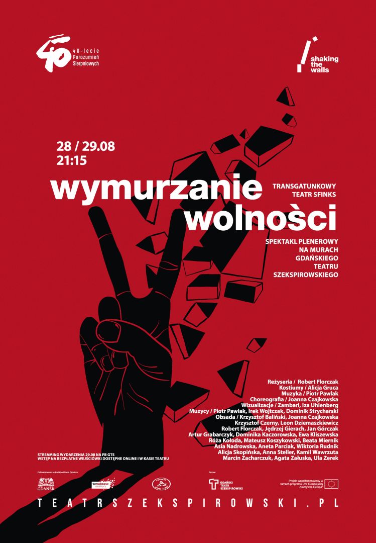 Odnosząc się do roli miasta Gdańska jako kolebki ruchów wolnościowych we Wschodniej Europie Fundacja SFINKS (Sopockie Forum integracji Nauki Kultury i Sztuki) realizuje muzyczno–tanecznoplastyczny performans wykorzystujący, w sposób fizyczny mur Gdańskiego Teatru Szekspirowskiego do metaforycznego ukazania roli wolności i solidarności w życiu jednostek i społeczeństwa, nawiązując jednocześnie do 40. rocznicy Sierpnia ’80. Wydarzenie jest dofinansowane ze środków Miasta Gdańska.