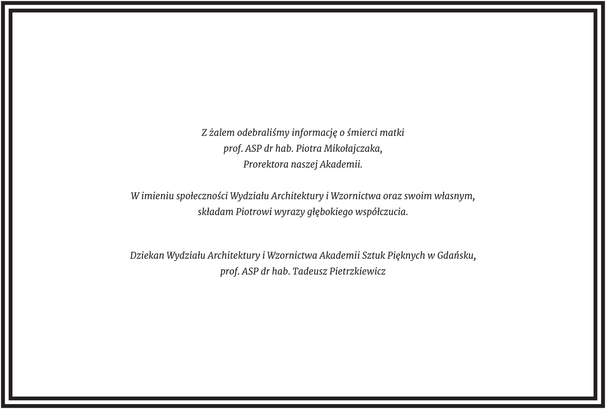 Kondolencje dla prof. ASP dra hab. Piotra Mikołajczaka