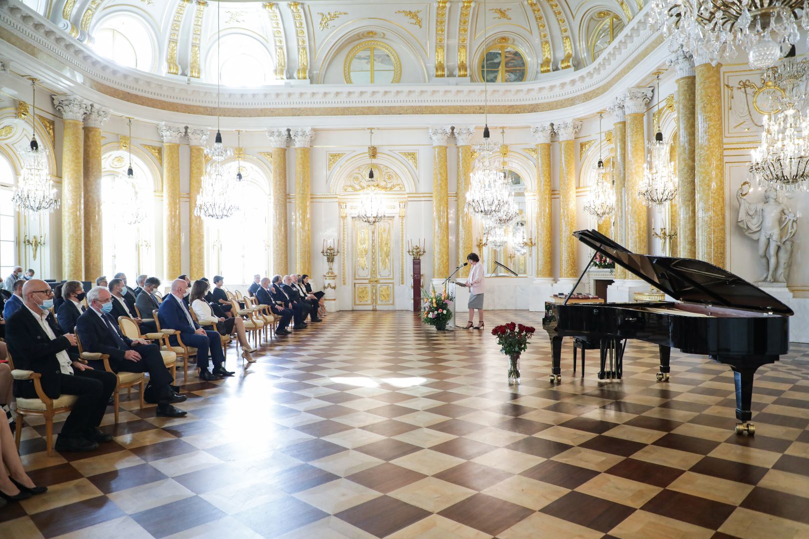 - Jesteście Państwo grupą akademickich liderów i świetlanym wzorem dla swoich podopiecznych. Chciałbym, aby otrzymane laury były dla Państwa wyrazem podziękowania i wynagrodzeniem za wieloletnią oddaną pracę – powiedziała wiceminister kultury Wanda Zwinogrodzka do uhonorowanych rektorów i kanclerzy uczelni artystycznych podczas uroczystego spotkania na Zamku Królewskim w Warszawie.