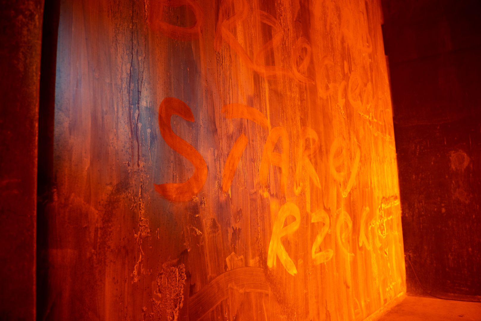 Zrealizowana praca artystyczna została oparta na przeprowadzonych badaniach przestrzeni w znaczeniu jej topografii – kolistości, ale także uwarunkowania braku światła i nieobecnej już wody, co ujawniło opozycje binarne i antagonistyczne w ustawieniu: początek/koniec, światło/ciemność, nieobecność/obecność, linearność/cykliczność. Te dychotomie stały się inspiracjami dla powstania konkretnych prac. W realizacji koncepcji artystycznej siłą napędową stała się także semantyka i etymologia słów: ,,warstwa’’ jako miejsce zalane wodą; ,,wspomnienie’’ jako powrót do przeszłości; ,,koniec’’ niesie w sobie znaczenie początku. Praca umieszczona jest w zewnętrznym pierścieniu Zbiornika oraz w przestrzeni komory zasuw przy wykorzystaniu metody site-specific.