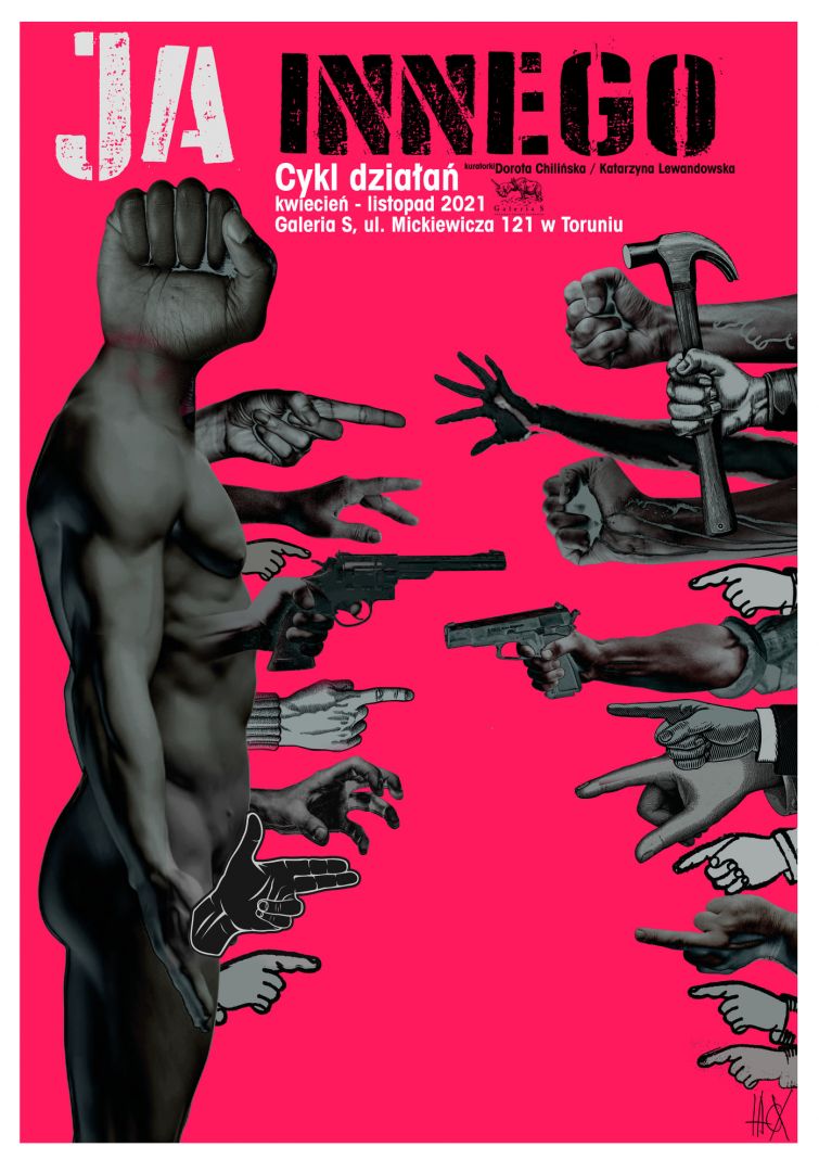 JA / INNEGO to nowy program kuratorski, który rozpocznie się w kwietniu 2021 i potrwa przez najbliższy rok. Będzie to cykl wydarzeń odbywających się w Galerii S w Toruniu mających na celu stworzenie bezpiecznej przestrzeni dla wypowiedzi osób studiujących, wykładowczyń i wykładowców oraz artystek i artystów realizujących prace, które dotyczą wszelkich form wykluczenia. Tematem na którym chcemy się skupić w sposób szczególny jest figura INNEGO, rozpoznawana w różnych kontekstach. Naszym celem jest rozbrojenie stereotypów oraz stworzenie platformy dialogu z udziałem nie tylko twórczyń i twórców, ale również naukowczyń i naukowców badających ten obszar. Od dłuższego czasu obserwujemy silne zainteresowanie tematyką wykluczenia, które przejawia się w niebezpiecznych postawach homofobicznych, rasistowskich, antysemickich. Osoby, które tworzą mają bardzo silną potrzebę krytycznego komentarza wobec takiej rzeczywistości i takich zachowań. Zależy nam na działaniach angażujących przede wszystkim osoby studiujące na Wydziale Sztuk Pięknych, ale również studentki i studentów z innych uczelni artystycznych m.in. z ASP w Gdańsku, ASP w Łodzi. Działania JA / INNEGO będą przede wszystkim programem edukacyjnym, skupionym na rozwijaniu świadomości, języka i kultury społecznej, troski o INNEGO w rozumieniu skomplikowanych zjawisk związanych z płciowością, narodowością, religią etc. Wystawy i pokazy będą uzupełniane wykładami osób zajmujących się naukowo tematem wykluczenia. Liczymy na szereg działań artystycznych, różnorodność form, dyskusje i pokazy.