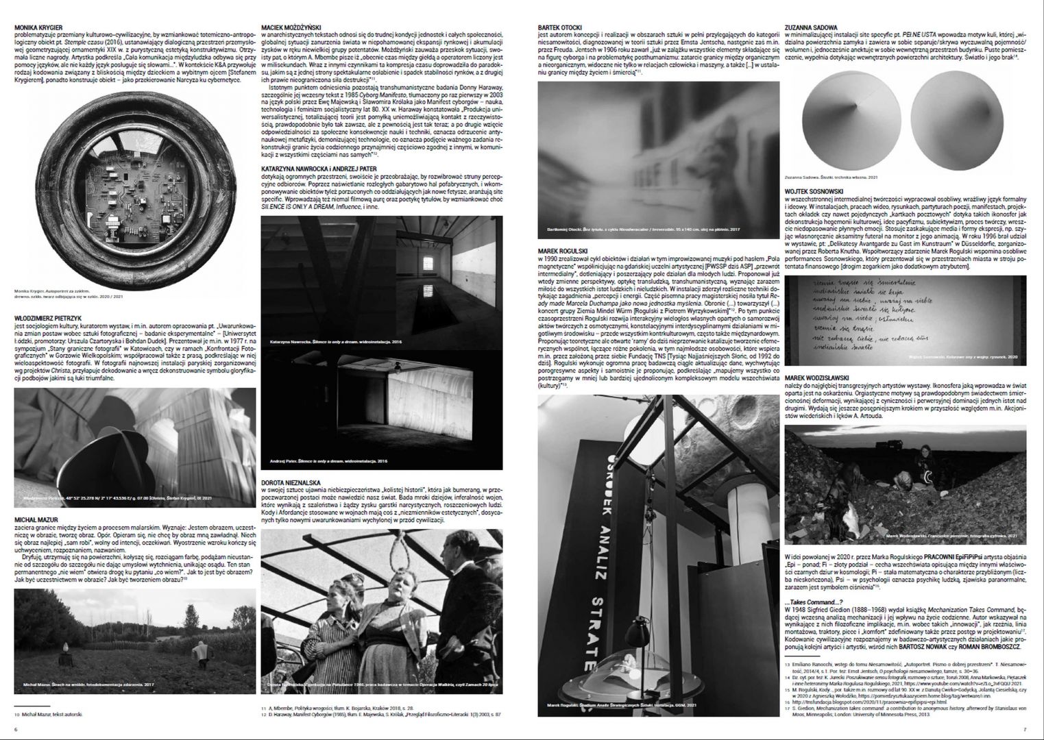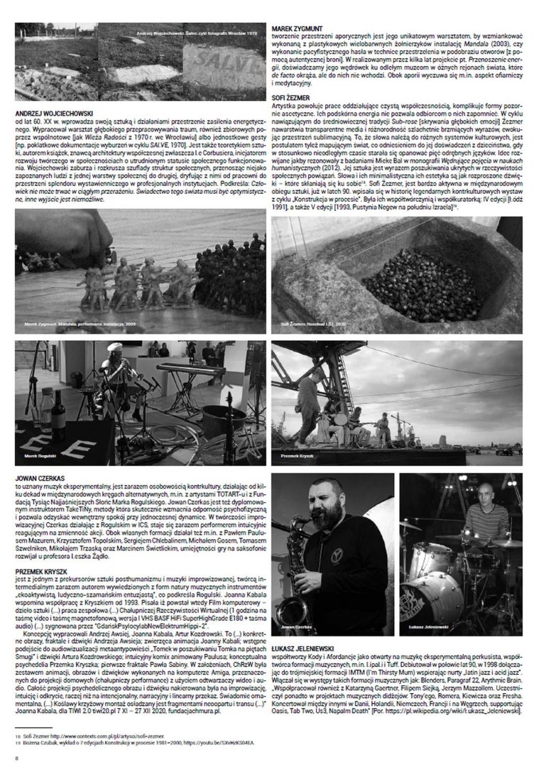 Roman Bromboszcz, Jowan Czerkas, Michał Gary Garnowski + Beata Oryl, Emilia Grubba, Katarzyna A. Jarnuszkiewicz + Krystian Jarnuszkiewicz, Łukasz Jeleniewski, Katarzyna Józefowicz, Andrzej Karolewicz, Magdalena Kieszniewska, Monika Krygier, Stefan Krygier: Władysław Strzemiński, Włodzimierz Pietrzyk: Christo, Przemek Kryszk, Michał Mazur, Maciek Możdżyński, Katarzyna Nawrocka + Andrzej Pater, Dorota Nieznalska, Bartosz Nowak, Bartłomiej Otocki, Pracownia Epifipipsi, Marek Rogulski, Zuzanna Sadowa, Wojtek Sosnowski, Marek Wodzisławski, Andrzej Wojciechowski, Marek Zygmunt, Sofi Żezmer