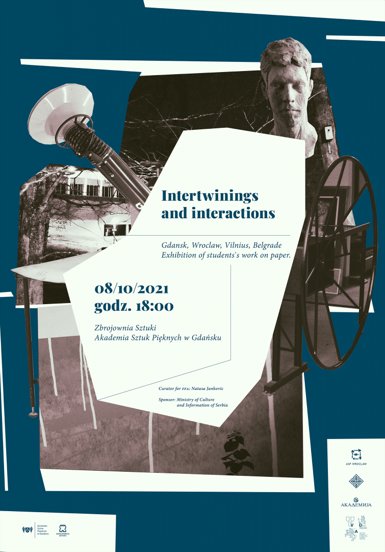 Thanks to the support of the Ministry of Culture of the Republic of Serbia, the exhibition Intertwinings and Interactions will present works on paper by students of four Academies/Faculties of Fine Arts – those in Gdańsk, Wrocław, Vilnius, and Belgrade. The exhibition, which will be held in each of these cities, aims to promote the work of outstanding students – young artists, and provide insight into the similarities and differences between the curricula of these four renowned institutions of higher education.