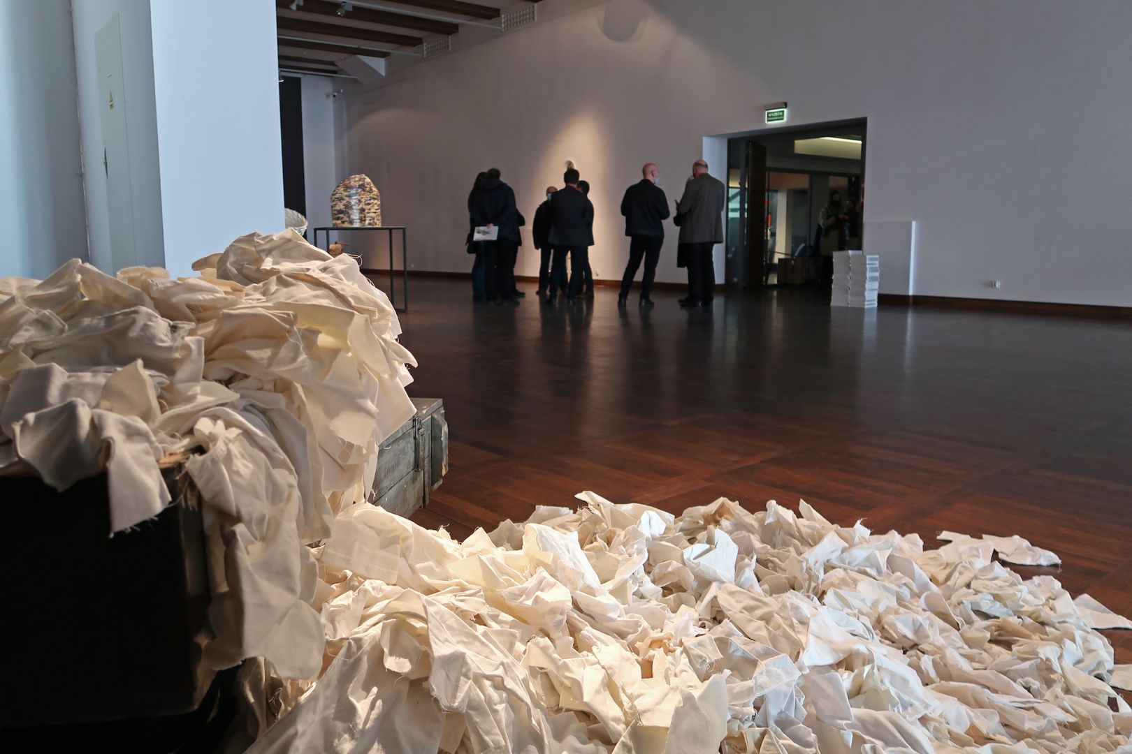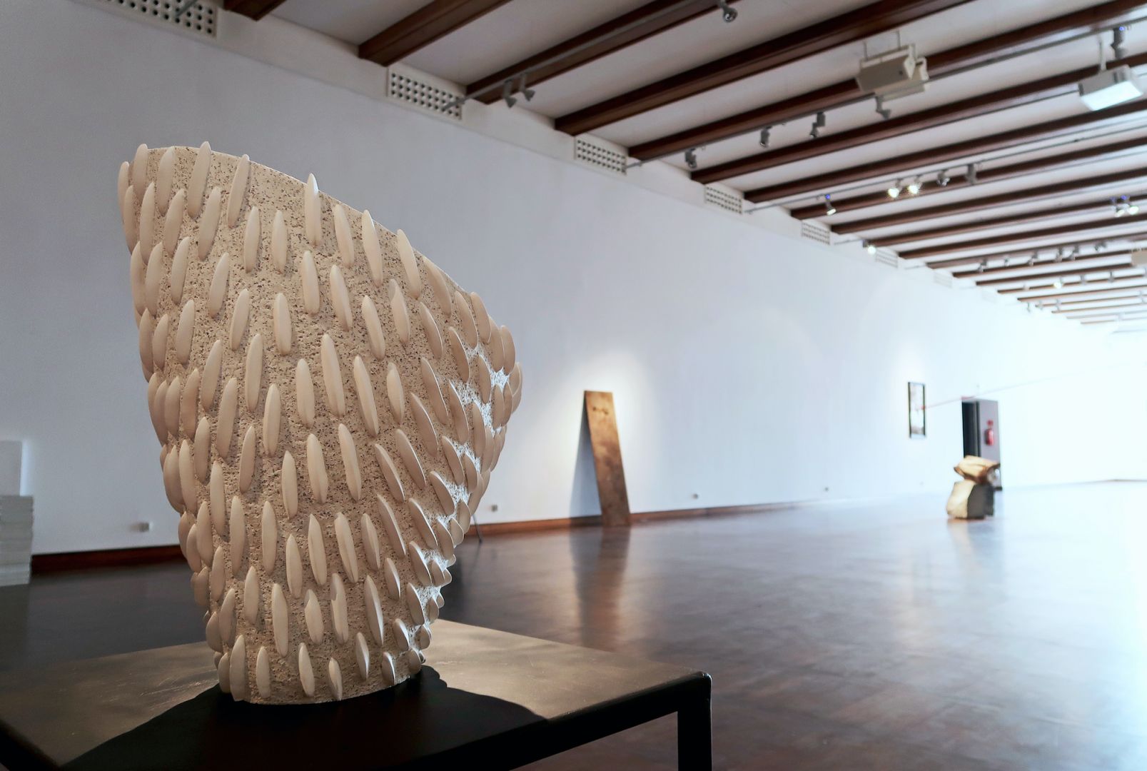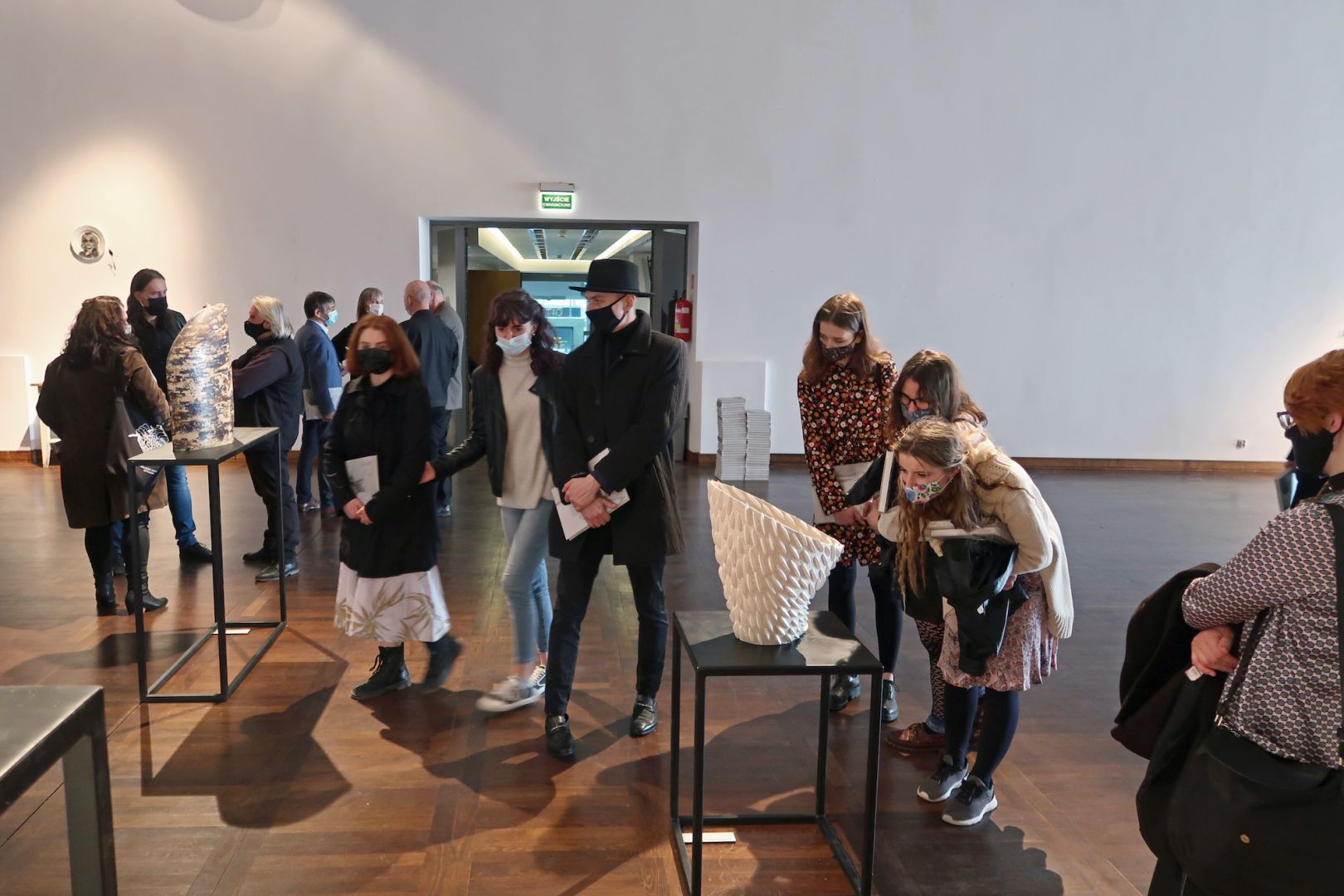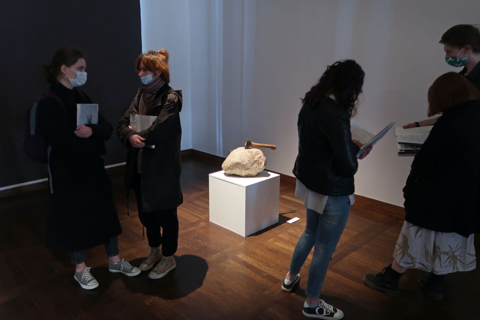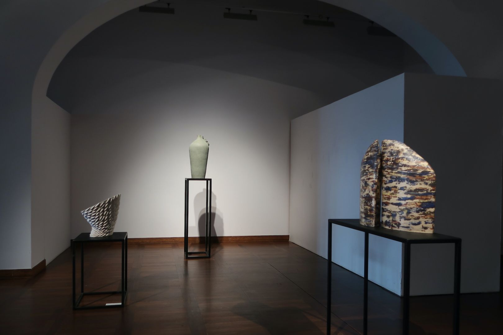 The exhibition Sculpture of non-public spaces is a presentation of the work of teachers from the University of Silesia in Katowice, who run the sculpture and ceramics workshops of the Institute of Fine Arts in Cieszyn. Jerzy Fober, Katarzyna Handzlik, Grzegorz Majchrowski, Krystyna Pasterczyk, Małgorzata Skałuba-Krentowicz and Andrzej Szarek are six independent propositions of speech in the language of art, not corrected by the current fashion or artistic situation. The event is accompanied by an extensive album publication supplemented by authors' texts and selected works in the field of sculpture by graduates of the Faculty of Arts (currently the Faculty of Arts and Educational Science of the University of Silesia).