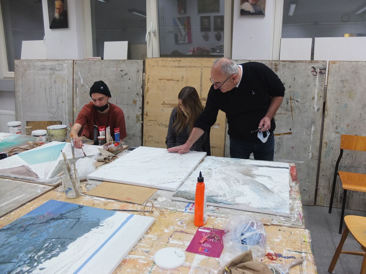 W tygodniu 22-26.1listopada gościliśmy na Wydziale Malarstwa prof. Otara Chakvetadze z Gruzji, który jest prodziekanem Wydziału Sztuk Pięknych w partnerskiej uczelni - gruzińskiej Tbilisi State Academy of Art. Wizyta odbywa się w w ramach programu Erasmus+ – projektu objętego umową nr 2020-1-PL01-KA107-07914. Profesor prowadził w środę i czwartek warsztaty dla studentów Malarstwa w sali P7, a na Patio zorganizowano pokaz ich rezultatów. Zapraszamy do obejrzenia Galerii.