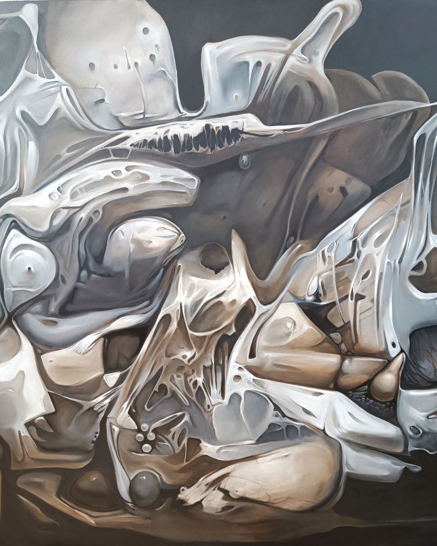 Drugi obraz malowałem w okresie od marca do maja 2022 roku, w czasie, kiedy rozpoczęła się wojna w Ukrainie, dzień po swoim powrocie z Kijowa. Dominował we mnie chaos i adrenalina, dziesiątki telefonów z rodziną i przyjaciółmi, wysyłanie i odbieranie wiadomości, zastanawianie się jak słusznie postąpić, co w ogóle robić?
