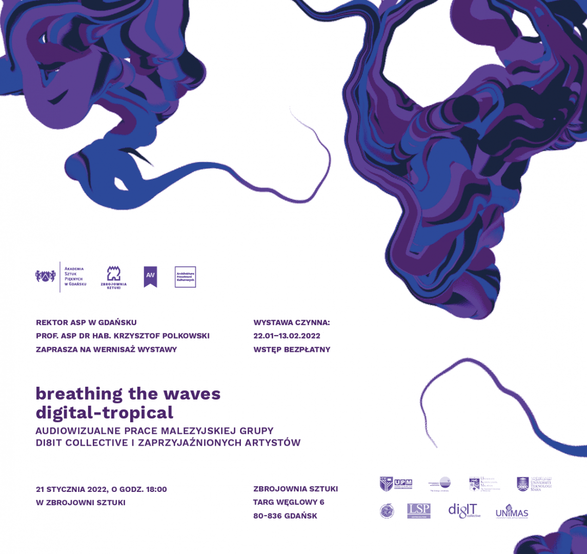 Breathing the waves (Oddychając falami) to multimedialna wystawa prac malezyjskich artystów, naukowców w większości związanych z uniwersytetem Putra Malaysia. Tytuł i główna idea projektu pochodzi od jednej z dwóch realizacji di8IT collective , interdyscyplinarnej grupy działającej na styku nauki, projektowania i sztuk wizualnych. Praca zainicjowała rozważania na temat pojęcia fali na jej wielu poziomach semantycznych. Możemy je odnaleźć w realizacjach właśnie di8IT collective jak i w pozostałych indywidualnych pracach składających się na ekspozycję.