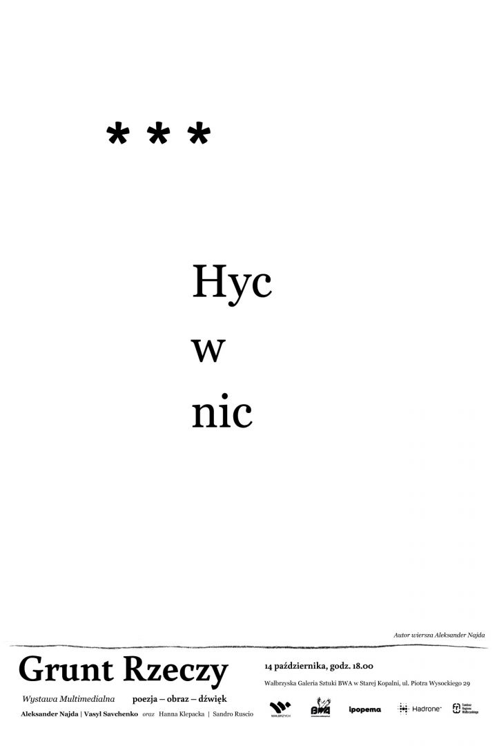 W piątek, 14 października 2022, w Wałbrzyskiej Galerii Sztuki BWA na terenie Starej Kopalni otwarta zostanie wystawa multimedialna „GRUNT RZECZY”, łączącej poezję z obrazem i dźwiękiem.
