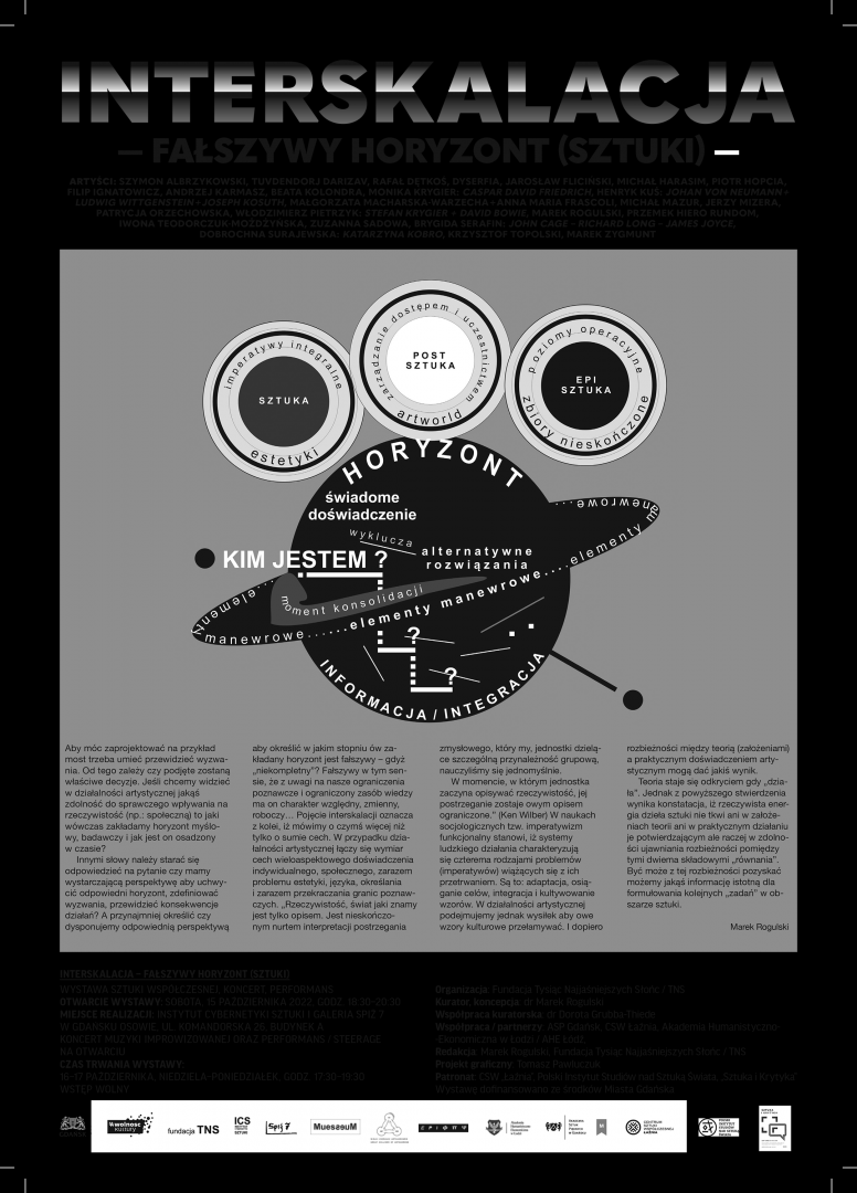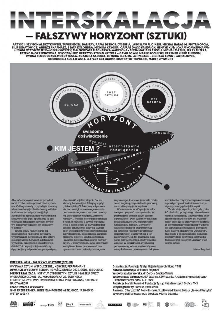 Specjalne Podziękowania dla Pani Jadwigi Charzyńskiej Dyrektor CSW Łaźnia 1/2 w Gdańsku i Nowym Porcie oraz wszystkich Osób, które współtworzą oraz wspierają projekt "INTERSKALACJA – FAŁSZYWY HORYZONT (SZTUKI)"