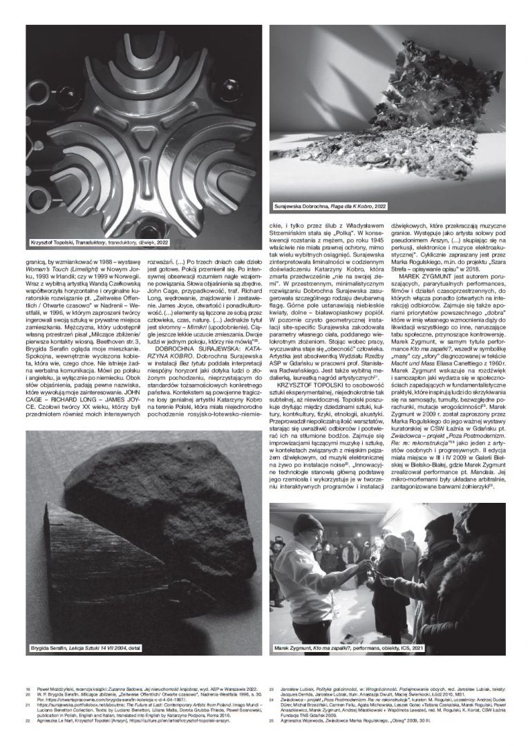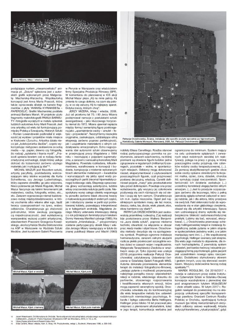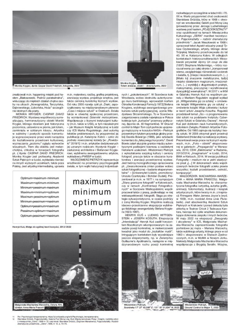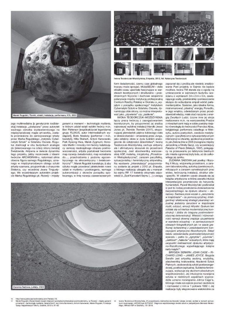 Artystki i artyści: Szymon Albrzykowski, Tuvdendorj Darizav, Rafał Dętkoś, Dyserfia, Jarosław Fliciński, Michał Harasim, Piotr Hopcia,Filip Ignatowicz, Andrzej Karmasz, Beata Kolondra, Monika Krygier: Caspar David Friedrich, Henryk Kuś: Johan von Neumann +Ludwig Wittgenstein + Joseph Kosuth, Małgorzata Macharska-Warzecha + Anna Maria Frascoli, Michał Mazur, Jerzy Mizera, Patrycja Orzechowska, Włodzimierz Pietrzyk: Stefan Krygier + David Bowie, Marek Rogulski, Przemek Hiero Rundom, Iwona Teodorczuk-Możdżyńska, Zuzanna Sadowa, Brygida Serafin: John Cage – Richard Long – James Joyce, Dobrochna Surajewska: Katarzyna Kobro, Krzysztof Topolski, Marek Zygmunt.