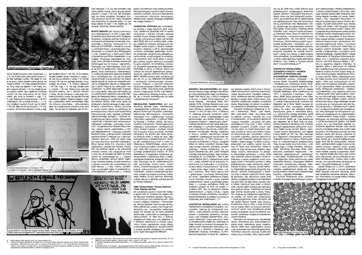 GAST BOUSCHET & NADINE HILBERT + YANNICK FRANCK & XAVIER DUBOIS, MARCIN BOŻEK, MARTA BRANICKA, HANNA BRZUSZKIEWICZ, LESZEK BROGOWSKI: ANDRÉ CADERE, ANDRZEJ CIESIELSKI: ANDRZEJ PARTUM: RYSZARD ZIARKIEWICZ, JOWAN CZERKAS (SOLUS CZERKAS) + PAWEŁ MACIEJUN, IWONA DEMKO: LOU ANDREAS-SALOME, NATALIA DOPKOSKA, MICHAŁ GOS, GRUPA SAM (TOMASZ BIELAK + TOMASZ ZABROCKI + PIOTR SZWABE), KRZYSZTOF JURECKI, SYLWIA JAKUBOWSKA, ANDRZEJ KAROLEWICZ, JERZY KOSAŁKA: MICHAEL CRAIG-MARTIN, BORYS MAKARY, KATARZYNA PODPORA: TANAKA ATSUKO, ROBERT MORRIS, GREGOR SCHNEIDER, MAREK ROGULSKI, MAGDALENA SAMBORSKA, ANDRZEJ WOJCIECHOWSKI: LE CORBUSIER, KRZYSZTOF WRÓBLEWSKI: ALIGHEIRO E BOETTI + WOMEN ARTISTS OF PAKISTAN AND AFGHANISTAN: DOROTA GRUBBA