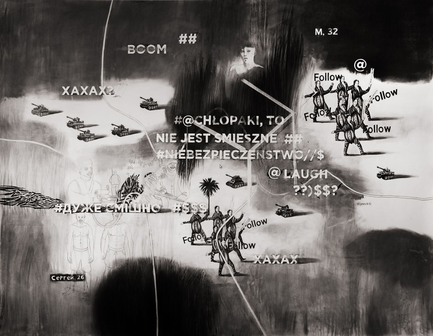 W tym projekcie Shumska poprzez akademiczny rysunek i przedstawienie krajobrazu odwoÅ‚uje siÄ™ do terytorium Ukrainy, objÄ™tego hybrydowym zbrojnym konfliktem w latach 2014-2020. Chociaż od czasu powstania projektu minęło 5 Å‚at, projekt niestety jest wciąż aktualny. Zarówno wydarzenia rosyjsko-ukraiÅ„skiej wojny, jak i innych wojen na Å›wiecie, sÄ… postrzegane za poÅ›rednictwem social media i Google Maps, prawdziwe tragedie i katastrofy miksujÄ… siÄ™ z memami i reklamami, a spoÅ‚eczeÅ„stwa na caÅ‚ym Å›wiecie tracÄ… wiarÄ™ w demokratyczne wartoÅ›ci, poddajÄ…c siÄ™ polityce strachu i populizmu. Rysunki artystki sÄ… natomiast wyabstrahowane i hybrydowe, łączÄ… kreskÄ™, elementy komiksu i estetykÄ™ komputerowÄ…, absurdalne kombinacje zrzutów ekranu, tekstów i militarystycznych symboli wojny. Projekcje wideo wprowadzajÄ… w ruch statyczne obrazy, nawarstwiajÄ… siÄ™ na nie, tworzÄ…c grÄ™ znaczeÅ„. Poprzez materializacjÄ™ efemerycznego zjawiska artystka zadajÄ™ pytanie o wpÅ‚yw informacji i treÅ›ci wirtualnych na przestrzeÅ„ fizycznÄ… i relacje spoÅ‚eczne.